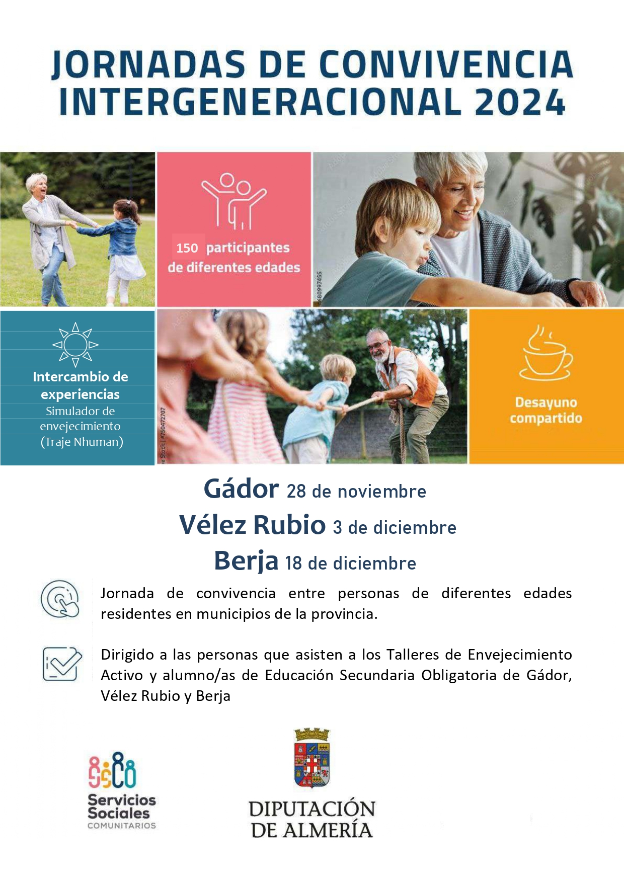 La Diputación de Almería, cumpliendo su deber de asegurar el ejercicio de las competencias municipales y, en particular en la competencia de desarrollar los Servicios Sociales Comunitarios, debe prestar servicios y recursos dirigidos a mejorar la calidad de vida de lo/as ciudadano/as de los municipios menores de 20.000 habitantes de la provincia.